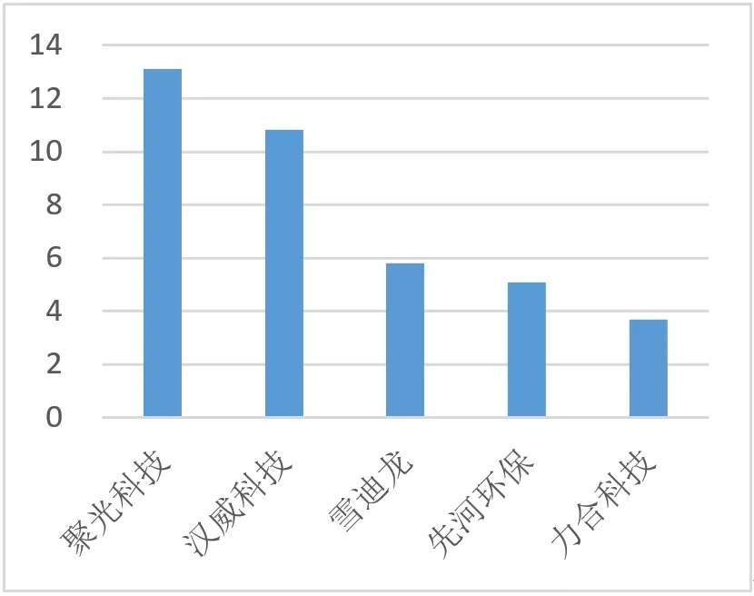 上半年大氣領域環(huán)保營收TOP5(單位:億元)