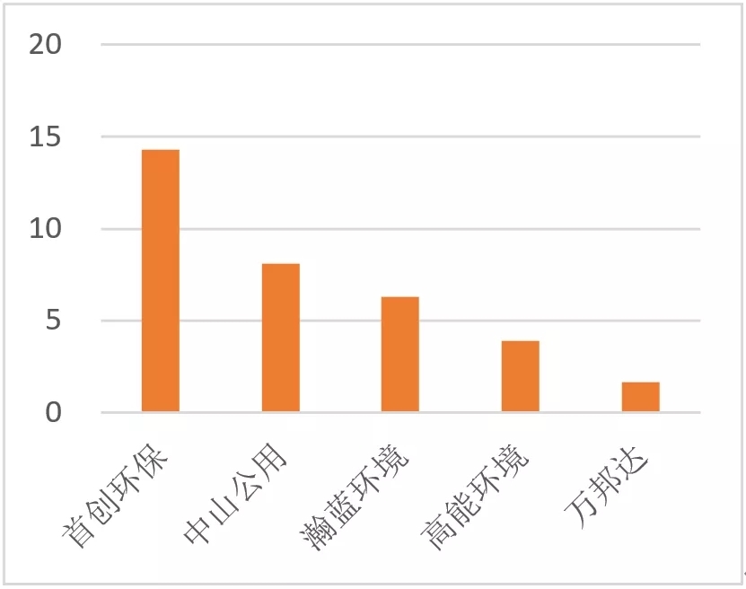 上半年固廢領域凈利潤TOP5(單位:億元)