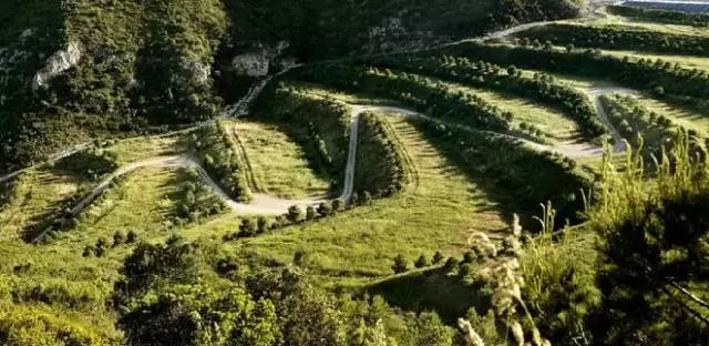 路徑的精心設(shè)計(jì)引導(dǎo)著游客在蜿蜒的梯田上查看恢復(fù)工作并欣賞風(fēng)景。由廢棄物構(gòu)成的矮墻設(shè)置在路徑旁,提醒著游客不應(yīng)忘卻場(chǎng)地幾十年的歷史。
