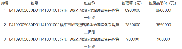 1.采購內容:濮陽市城區(qū)道路揚塵治理設備采購