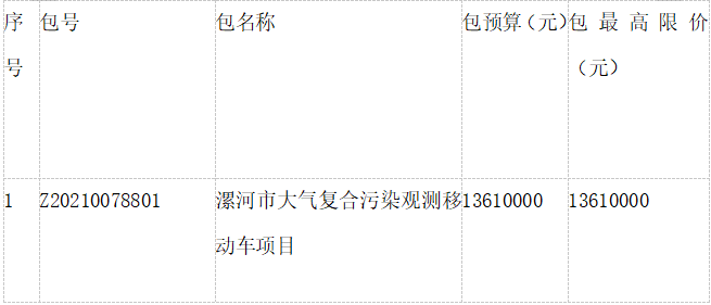 原標(biāo)題:漯河市大氣復(fù)合污染觀測(cè)移動(dòng)車項(xiàng)目公開招標(biāo)公告