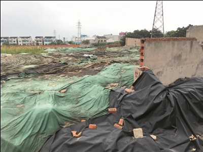 8月29日上午10點,記者來到位于湟里鎮(zhèn)東安衛(wèi)生院西側的博世爾公司原地塊,見到了儲某。在儲某的帶領下,記者剛進入原廠區(qū),就聞到了一股不太濃烈的化工味道。在廠區(qū)的北面,記者看到有一圈半人高的圍墻,圍墻內是一大堆一大堆的黑色污穢,這里的化工味道就更濃了。儲某說,這就是他當初生產遺留下來的工業(yè)廢料油污。