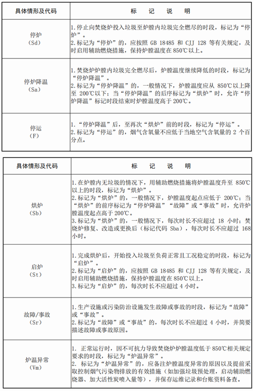 4.3 焚燒爐工況發(fā)生變化時,應(yīng)按照表 1 及時進行焚燒爐工況標(biāo)記;未作標(biāo)記的,焚燒爐視為正常運行。