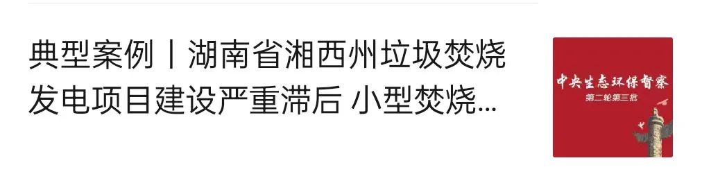 在湖南湘西州,督察組指出,湘西州計(jì)劃建設(shè)2個(gè)垃圾焚燒發(fā)電項(xiàng)目,但進(jìn)度嚴(yán)重滯后,一拖再拖,導(dǎo)致州內(nèi)小型焚燒爐遲遲得不到取締。