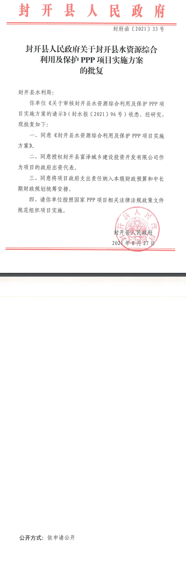 3、封開縣人民政府關(guān)于封開縣水資源綜合利用及保護(hù)PPP項目實施方案的批復(fù)(1)