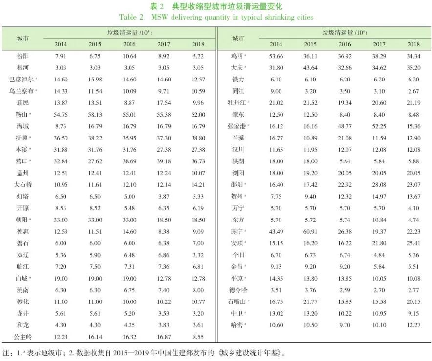 城市收縮是我國城鎮(zhèn)化發(fā)展面臨的重大趨勢,這一趨勢也會對生活垃圾的產(chǎn)生與處理產(chǎn)生重要影響。本研究首次對收縮型城市的生活垃圾管理問題進行了分析,目前尚未有相關(guān)研究。