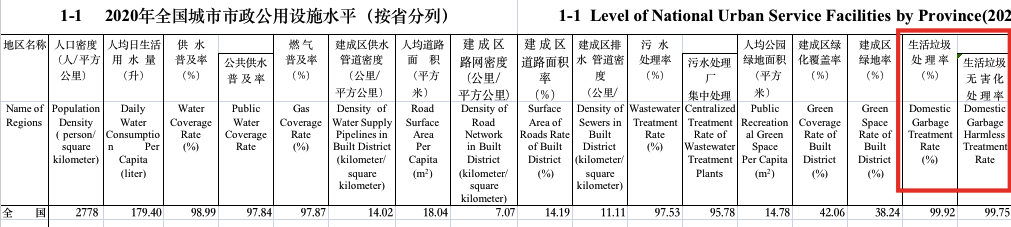 村鎮(zhèn)環(huán)衛(wèi)歷史上幾乎是空白,近年來通過城鄉(xiāng)環(huán)衛(wèi)一體化建設(shè)、農(nóng)村廁改,方使村鎮(zhèn)初步有了市容環(huán)衛(wèi)管理體系。從《年鑒》數(shù)據(jù)來看,村鎮(zhèn)環(huán)衛(wèi)發(fā)展雖然面臨種種難題,但依舊取得了巨大的進(jìn)展。這兩個數(shù)字經(jīng)常是混淆在一起的,但在《年鑒》中,這是不同的統(tǒng)計數(shù)據(jù)。2020年,全國城市生活垃圾處理率為99.92%,全國城市生活垃圾無害化處理率為99.75%,這意味著全國仍有0.25%的生活垃圾未得到無害化處理,按2020年全國城市生活垃圾清運量計算,大約有58.78萬噸生活垃圾未能無害化處理,如果直接用表1中的垃圾無害化處理量和垃圾清運量相減,則可以到60萬噸這個整數(shù),大致相當(dāng)。