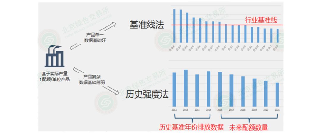 配額分配方法有歷史排放總量、行業(yè)基準(zhǔn)線、歷史排放強(qiáng)度等多種。已發(fā)布的發(fā)電行業(yè)配額實(shí)施方案采用有調(diào)整系數(shù)的基準(zhǔn)線法。結(jié)合有關(guān)專家領(lǐng)導(dǎo)態(tài)度來看,我國碳排放配額分配辦法“最終目標(biāo)還是要統(tǒng)一實(shí)行基準(zhǔn)線法”。