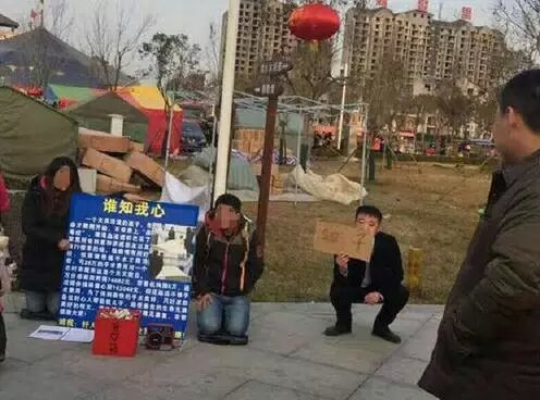 這幾天,網(wǎng)上一組“揭穿騙子乞討”的圖片在網(wǎng)絡(luò)上躥紅。圖片中,兩名年輕男女以孩子患病籌醫(yī)藥費為由跪地乞討,旁邊一名男子則舉起了寫著“騙子”的紙牌。