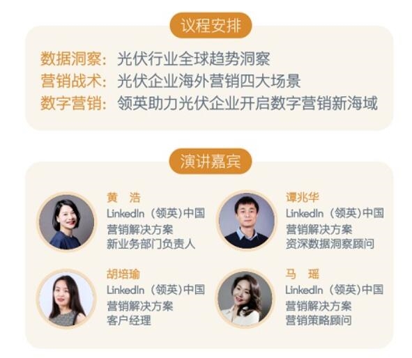 領(lǐng)英光伏出海私享會,備戰(zhàn)光儲新機(jī)遇之?dāng)?shù)與術(shù),就是洞悉海外市場,把握未來光伏市場的關(guān)鍵,2022年1月20日14:15-16:00準(zhǔn)時(shí)召開,快來一起參會吧!