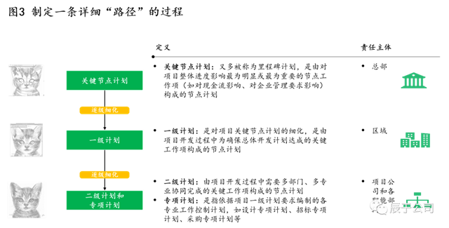 這些應(yīng)當(dāng)做的事項(xiàng)應(yīng)該明確下來(lái),成為詳細(xì)的項(xiàng)目實(shí)施計(jì)劃——在時(shí)間維度上確定每個(gè)時(shí)間節(jié)點(diǎn)上,明確每個(gè)參與者要提供什么、做到什么,這才真正把目標(biāo)分解下去。大多成功案例中,企業(yè)的工程管理都是抓大放小,先管住關(guān)鍵節(jié)點(diǎn),把控整個(gè)項(xiàng)目,在關(guān)鍵節(jié)點(diǎn)下,再一步步確定更加詳細(xì)的計(jì)劃(如圖3)。如果每個(gè)階段的目標(biāo)都能達(dá)成,那么最終的目標(biāo)自然能夠?qū)崿F(xiàn)。