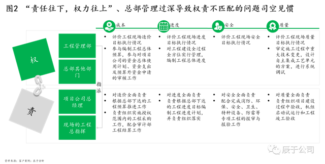 第一,項(xiàng)目公司和總部工程管理部的博弈:從合同關(guān)系上看,項(xiàng)目公司與外部單位是甲乙方關(guān)系,項(xiàng)目如何開展,作為獨(dú)立的法人單位,應(yīng)當(dāng)主要是項(xiàng)目公司決策,責(zé)任也應(yīng)該他們擔(dān),但事實(shí)上,總部的工程管理部作為直接上級(jí),勢(shì)必要對(duì)一些事項(xiàng)進(jìn)行管理,與項(xiàng)目公司成為共同的甲方,造成項(xiàng)目公司的責(zé)任與權(quán)力割裂。