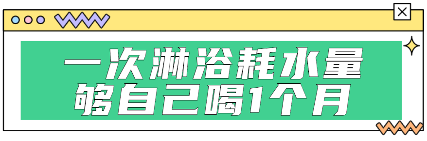 如果你洗澡夠快,估計能用10分鐘解決,但就是這樣也用掉了40升水,也就是80瓶礦泉水。如果你是女性,一般來說洗澡淋浴的時間就會更長,15、20分鐘不在話下。這樣的話,最保守的估計也要花掉60升水,這些水夠自己喝1個月了。