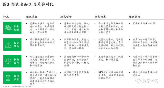 不同的綠色金融工具在資金來源、投資風(fēng)險、杠桿效應(yīng)、期限匹配等方面都有所差異(見圖3),在實際項目運用中,可根據(jù)項目實際情況靈活運用,最大限度的降低資金成本。