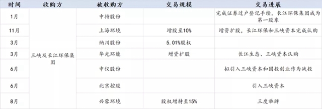 不僅如此,三峽集團(tuán)通過(guò)收并購(gòu)?fù)晟撇季值膽B(tài)勢(shì)也很迅猛。從2018年年初宣布進(jìn)軍環(huán)保,到現(xiàn)在手握近千億環(huán)保訂單、重金狂攬多家上市公司股權(quán),三峽集團(tuán)獨(dú)樹(shù)一幟,通過(guò)“資本+”的模式,將水環(huán)境綜合治理帶到了一個(gè)前所未有的高度。相比于其它國(guó)有資本的控股并購(gòu),三峽集團(tuán)的并購(gòu)卻并不相同。目前,三峽集團(tuán)“資本+”的模式,均采用了參股或合資(出資比例依然低于50%)的形式。