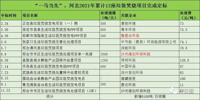 除了數(shù)量眾多之外,河北釋放的垃圾焚燒項目也頗具看點,不僅吸引了中節(jié)能、中國環(huán)保、康恒環(huán)境、深能環(huán)保、偉明環(huán)保、首創(chuàng)環(huán)保等影響力企業(yè)前來角逐,也有危廢行業(yè)龍頭雅居樂環(huán)保前來“分羹”,還有剛成立不久的本土企業(yè)“沙河海創(chuàng)環(huán)??萍?rdquo;收獲訂單。
