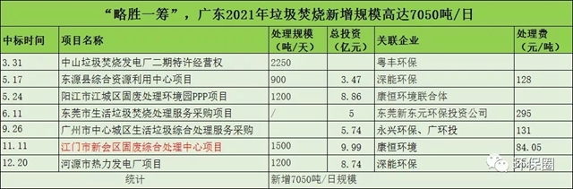 ▼圖六:2021年廣東釋放的部分垃圾焚燒項目