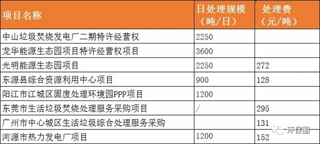 相對于其他省日處理規(guī)模小、處置費低,廣東地區(qū)垃圾焚燒項目質(zhì)量非常出色,不僅頻頻出現(xiàn)千噸級別大項目,而且政府給予的垃圾處理費也不低,都在百元以上。