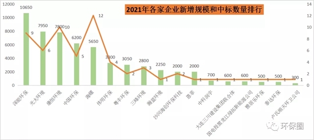 一個是深能環(huán)保,2021年累計中標了9個垃圾焚燒項目,新增規(guī)模首次突破萬噸/日,一舉斬獲了兩個年度“標王”大項目——深圳龍華能源生態(tài)園和深圳光明能源生態(tài)園,為其增加6000噸/日規(guī)模體量,新增規(guī)模躍居行業(yè)首位。
