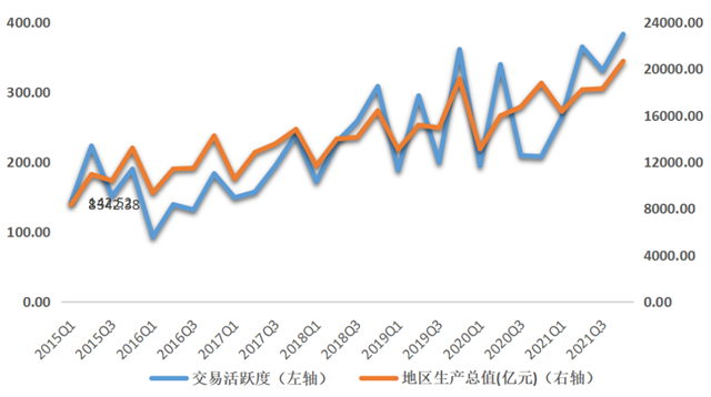 圖8 浙江省地區(qū)生產(chǎn)總值與交易活躍度相關(guān)性分析
