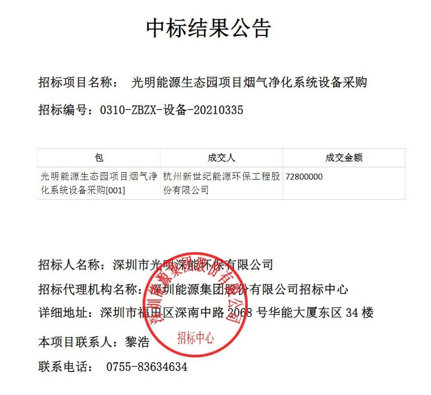 近日,中國大氣網(wǎng)從E20環(huán)境平臺標(biāo)訊采集系統(tǒng)E標(biāo)通獲悉,光明能源生態(tài)園項目煙氣凈化系統(tǒng)設(shè)備采購項目發(fā)布中標(biāo)公告,杭州新世紀(jì)能源環(huán)保工程股份有限公司中標(biāo)該項目,項目成交金額為7280萬元。