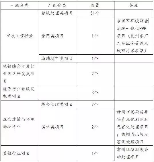 財政部或發(fā)改委目前公布的PPP項目行業(yè)類別中,尚沒有將餐廚垃圾處理作為一項獨立行業(yè)予以認定,因此,可查詢到的與餐廚垃圾處理相關(guān)的PPP項目,多為一級行業(yè)下所包含的子行業(yè)、子項目,而在一些諸如市政相關(guān)或城鎮(zhèn)綜合開發(fā)等行業(yè)中,上述情況尤為突出。