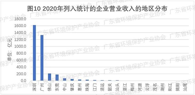 從地域分布看,列入統(tǒng)計的1607家企業(yè)主要集中分布在在廣州、佛山、深圳、東莞、中山和惠州等6個地市,其企業(yè)數(shù)量之和在全省占比為73.2%;其中,深圳和廣州2個地市的營業(yè)收入、環(huán)保業(yè)務(wù)營業(yè)收入占比合計分別達(dá)81.4%、72.3%。