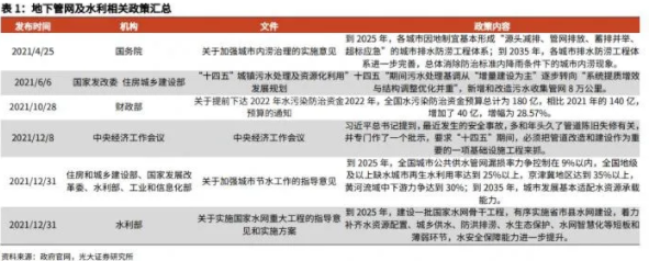 2021年以來(lái),國(guó)家密集出臺(tái)地下管網(wǎng)、水利工程建設(shè)的相關(guān)政策,可謂利好不斷。