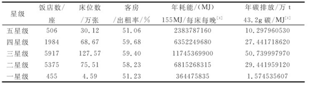表1:中國星級(jí)飯店床位能源消耗與碳排放情況