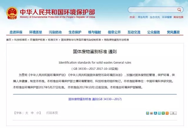 因此,為了統(tǒng)一各個檢驗(yàn)機(jī)構(gòu)或鑒別機(jī)構(gòu)鑒別固體廢物的尺度,保證鑒別質(zhì)量和鑒別結(jié)果的公正和可靠,環(huán)境保護(hù)部與國家質(zhì)量監(jiān)督檢驗(yàn)總局聯(lián)合發(fā)布《固體廢物鑒別標(biāo)準(zhǔn) 通則》(GB 34330-2017)。該標(biāo)準(zhǔn)是我國首次制定的關(guān)于固體廢物的鑒別標(biāo)準(zhǔn),具有強(qiáng)制執(zhí)行的效力。