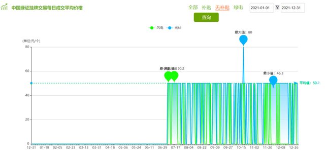 圖1 2021年補(bǔ)貼項(xiàng)目綠證成交價(jià)格情況
