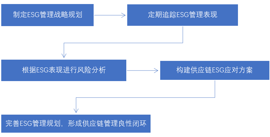 為了將ESG管理融入供應(yīng)鏈各個環(huán)節(jié),帶動供應(yīng)鏈上各個合作方的深度合作,需要為供應(yīng)鏈制定ESG戰(zhàn)略規(guī)劃;并且要從企業(yè)治理架構(gòu)的變革和規(guī)劃推動管理制度的變動,從而使ESG文化在企業(yè)中更好貫徹。規(guī)劃的實施還需要追蹤并評估有效性以保證規(guī)劃能夠為供應(yīng)鏈管理提供實時的長遠(yuǎn)的指導(dǎo)。因此需要定期對供應(yīng)鏈ESG執(zhí)行情況進(jìn)行核查,通過供應(yīng)鏈合作方的ESG表現(xiàn)以及風(fēng)險分析,來追蹤供應(yīng)鏈ESG管理情況。根據(jù)風(fēng)險分析的情況來構(gòu)建ESG應(yīng)對方案,同時ESG問題發(fā)生的因素變化也能夠被錨定為檢測標(biāo)準(zhǔn)從而預(yù)測風(fēng)險的未來演變。對ESG問題的關(guān)注和解決推動供應(yīng)鏈ESG規(guī)劃進(jìn)程,促進(jìn)企業(yè)整體ESG管理能力的提升。