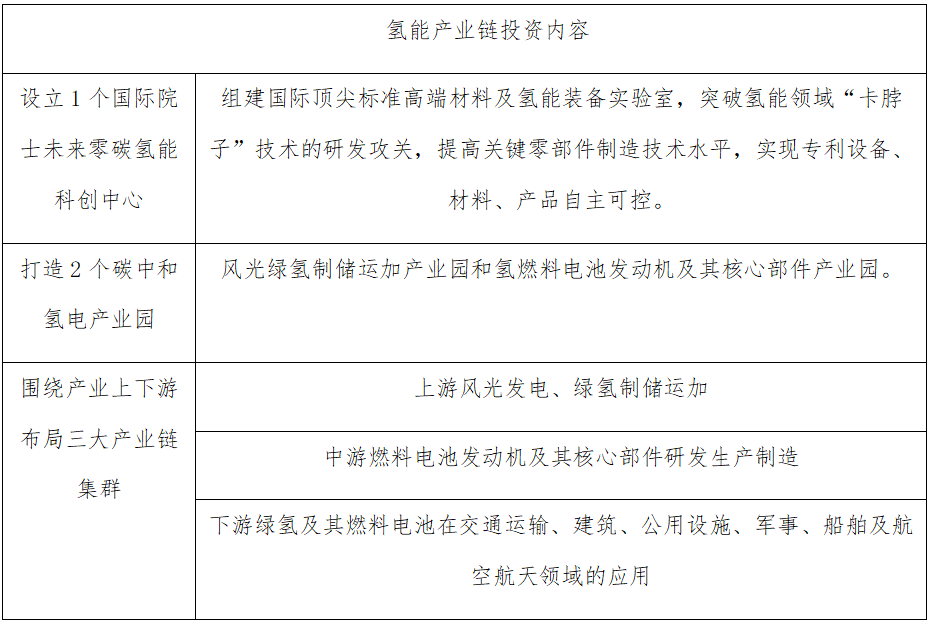 表2 烏海市氫能產(chǎn)業(yè)鏈投資內(nèi)容(資料來源:根據(jù)公開資料整理)