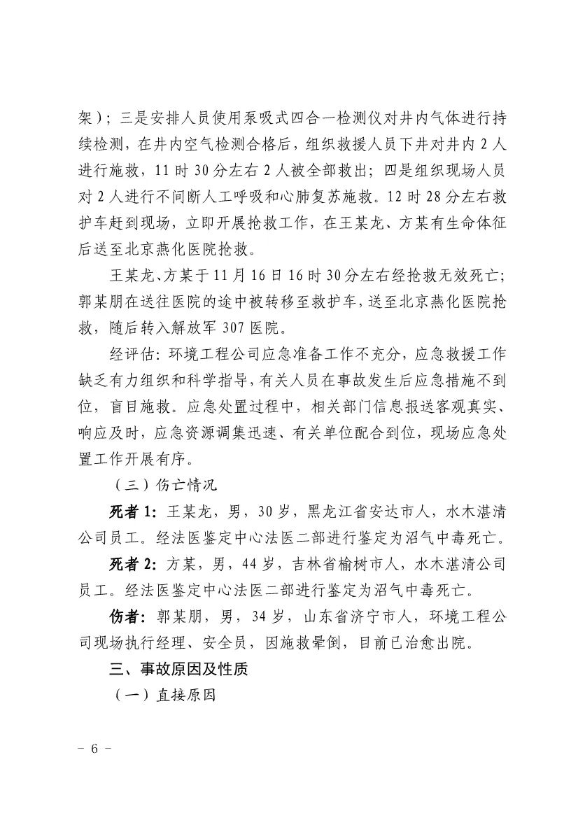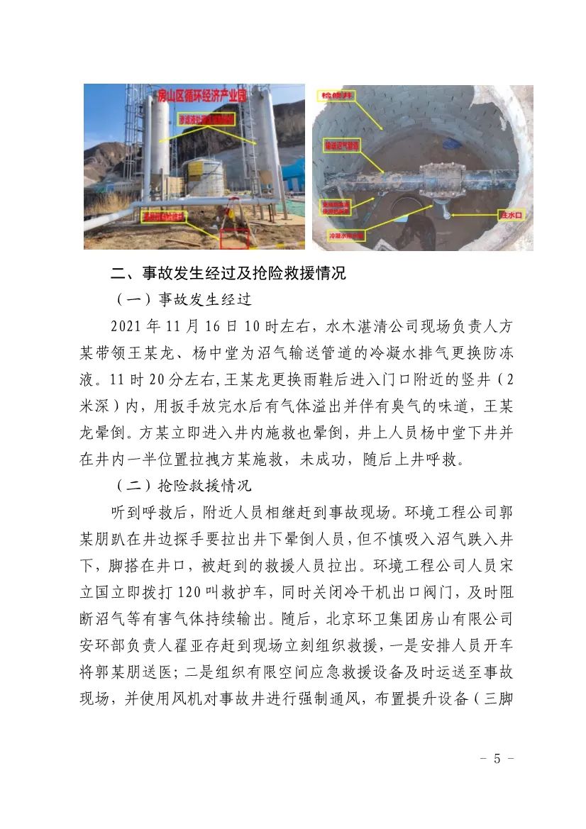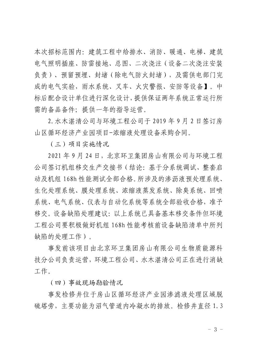 日前,北京市應(yīng)急管理局公布北京環(huán)衛(wèi)集團(tuán)循環(huán)經(jīng)濟(jì)產(chǎn)業(yè)園“11·16”一般生產(chǎn)安全事故調(diào)查報(bào)告。報(bào)告顯示,2021年11月16日,位于房山區(qū)佛子莊鄉(xiāng)的北京環(huán)衛(wèi)集團(tuán)循環(huán)經(jīng)濟(jì)產(chǎn)業(yè)園內(nèi)發(fā)生一起有限空間中毒事故,造成2人死亡,1人受傷。