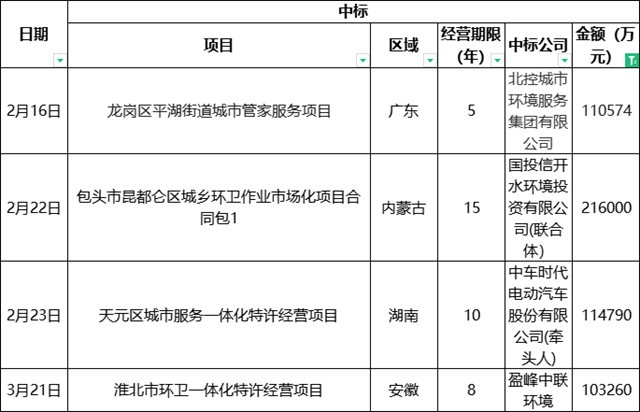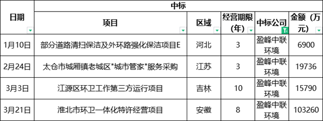 一季度盈峰中聯(lián)環(huán)境中標(biāo)的億級環(huán)衛(wèi)項(xiàng)目