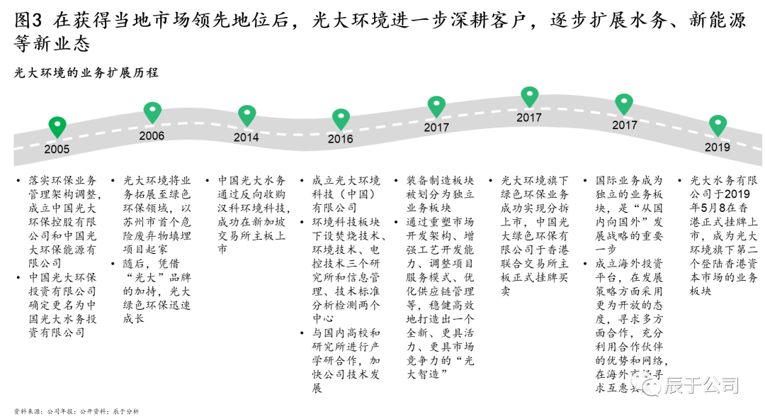 突出主業(yè)的同時,辰于發(fā)現(xiàn)這些領(lǐng)先企業(yè)也特別注意多業(yè)態(tài)的協(xié)同,他們大多涉足水、固、資源/能源等多個板塊,致力于為客戶提供全方位、一攬子解決方案。成為一流的環(huán)境綜合服務商是他們的一致愿景。