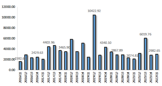 2022年第一季度,浙江省排污權(quán)成交量較上季度有所增長,四項(xiàng)排污權(quán)成交量合計(jì)為2982.65噸,環(huán)比增長5.96%,同比增長43.76%。