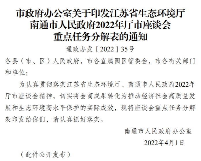 《通知》中具體將南通市2022年生態(tài)環(huán)境保護工作分解為以下12項內(nèi)容: