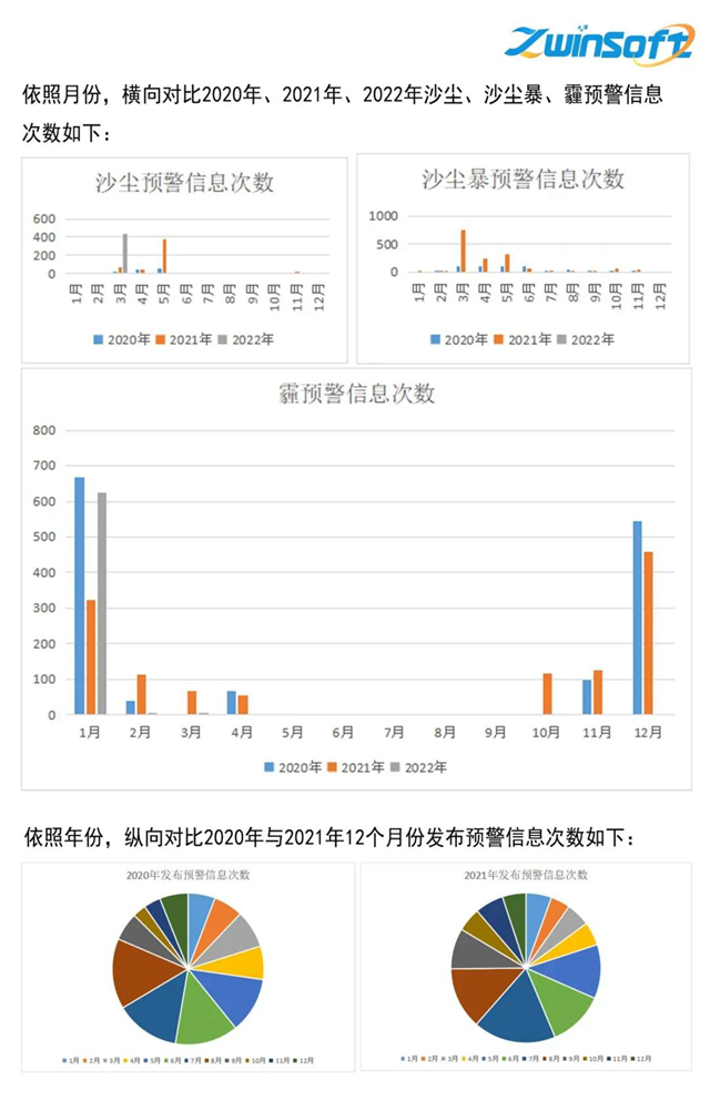 2021年,我國(guó)首次沙塵天氣過(guò)程發(fā)生時(shí)間為1月10日,較2000-2020年平均(2月17日)偏早38天,較2020年(2月13日)偏早34天,沙塵過(guò)程首發(fā)時(shí)間為2002年以來(lái)最早。不僅如此,通過(guò)《國(guó)家突發(fā)事件預(yù)警信息發(fā)布情況月報(bào)》2020年1月——2022年3月數(shù)據(jù)的比對(duì)分析,智易時(shí)代還發(fā)現(xiàn)了一些有趣的小規(guī)律。