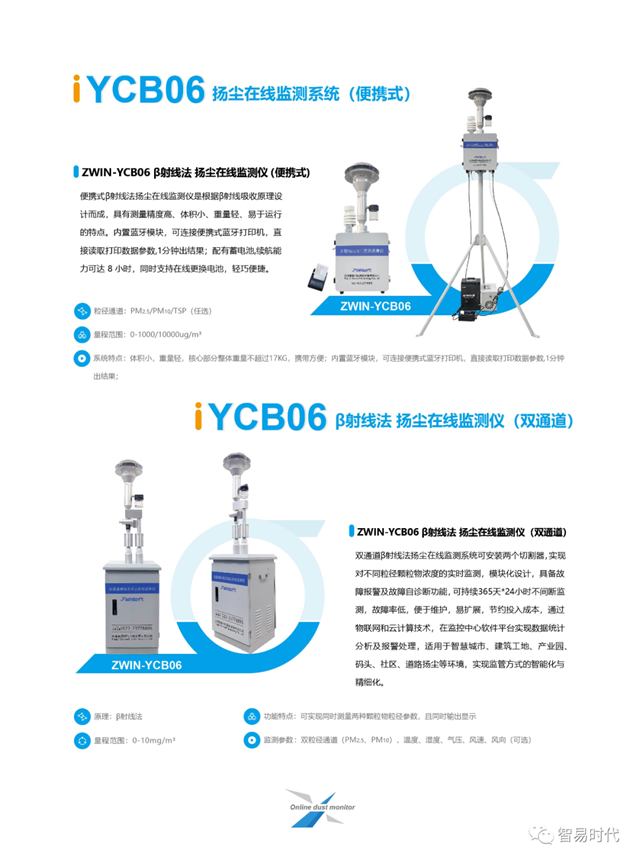 ZWIN-YCB06 β射線法揚(yáng)塵在線監(jiān)測(cè)儀是一款高度集成PM2.5、PM10、TSP (可選)、溫度、濕度、氣壓、光照、風(fēng)速、風(fēng)向、噪音等環(huán)境監(jiān)測(cè)因素,采用 β射線衰減原理對(duì)粒子進(jìn)行監(jiān)測(cè)自動(dòng)測(cè)量和記錄濃度,數(shù)據(jù)準(zhǔn)確可靠。具備開(kāi)機(jī)自啟動(dòng)、開(kāi)機(jī)自檢、自動(dòng)校準(zhǔn)功能,儀器配置溫濕聯(lián)控系統(tǒng)(DHS),去除濕度對(duì)測(cè)量數(shù)據(jù)的影響,外觀設(shè)計(jì)簡(jiǎn)單大方,安裝方式多樣,可選壁掛式、立桿安裝、支架安裝等。