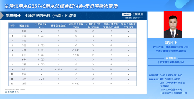 由歐陽正打頭陣,有關(guān)《生活飲用水 無機(jī)污染物監(jiān)測(cè)技術(shù)》的主題分享就此展開。