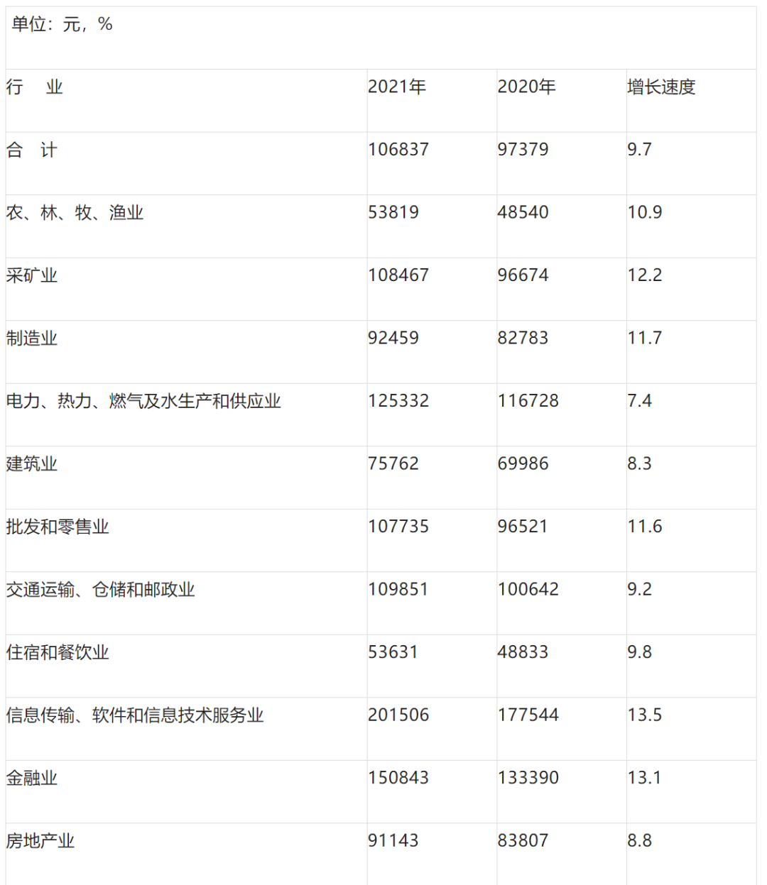 2021年城鎮(zhèn)非私營(yíng)單位就業(yè)人員年平均工資106837元
