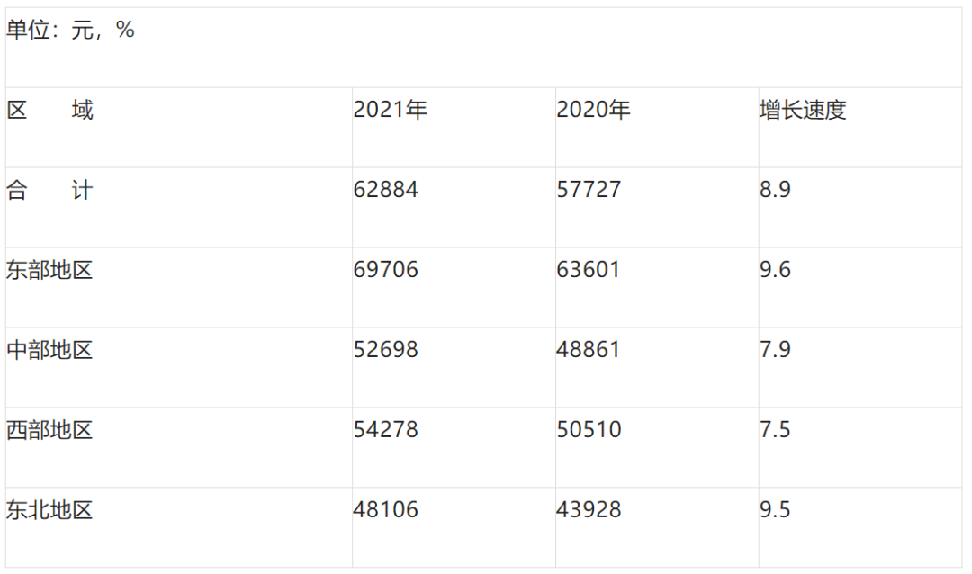 分區(qū)域看,城鎮(zhèn)私營(yíng)單位就業(yè)人員年平均工資由高到低依次是東部、西部、中部和東北地區(qū),分別為69706元、54278元、52698元和48106元,比上年分別增長(zhǎng)9.6%、7.5%、7.9%和9.5%。