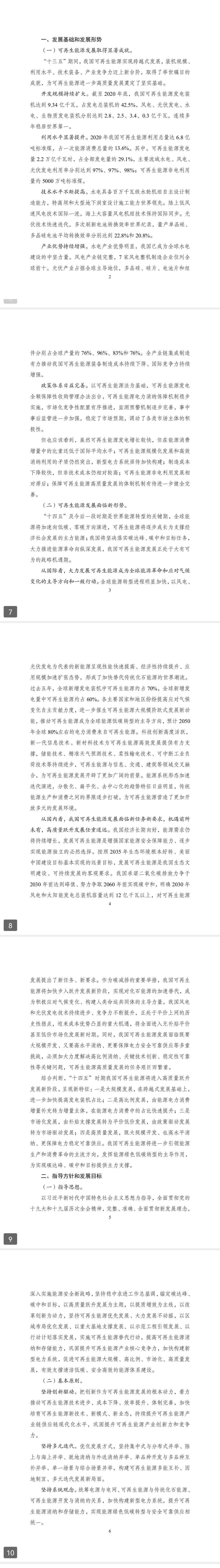 ??為深入貫徹“四個革命、一個合作”能源安全新戰(zhàn)略,落實碳達(dá)峰、碳中和目標(biāo),推動可再生能源產(chǎn)業(yè)高質(zhì)量發(fā)展,根據(jù)《中華人民共和國國民經(jīng)濟和社會發(fā)展第十四個五年規(guī)劃和2035年遠(yuǎn)景目標(biāo)綱要》和《“十四五”現(xiàn)代能源體系規(guī)劃》有關(guān)要求,我們組織編制了《“十四五”可再生能源發(fā)展規(guī)劃》?,F(xiàn)印發(fā)給你們,請遵照執(zhí)行。