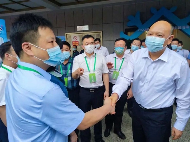 在活動現(xiàn)場,副省長李建中與九九智能環(huán)保董事長劉黎明進行了親切交流。
