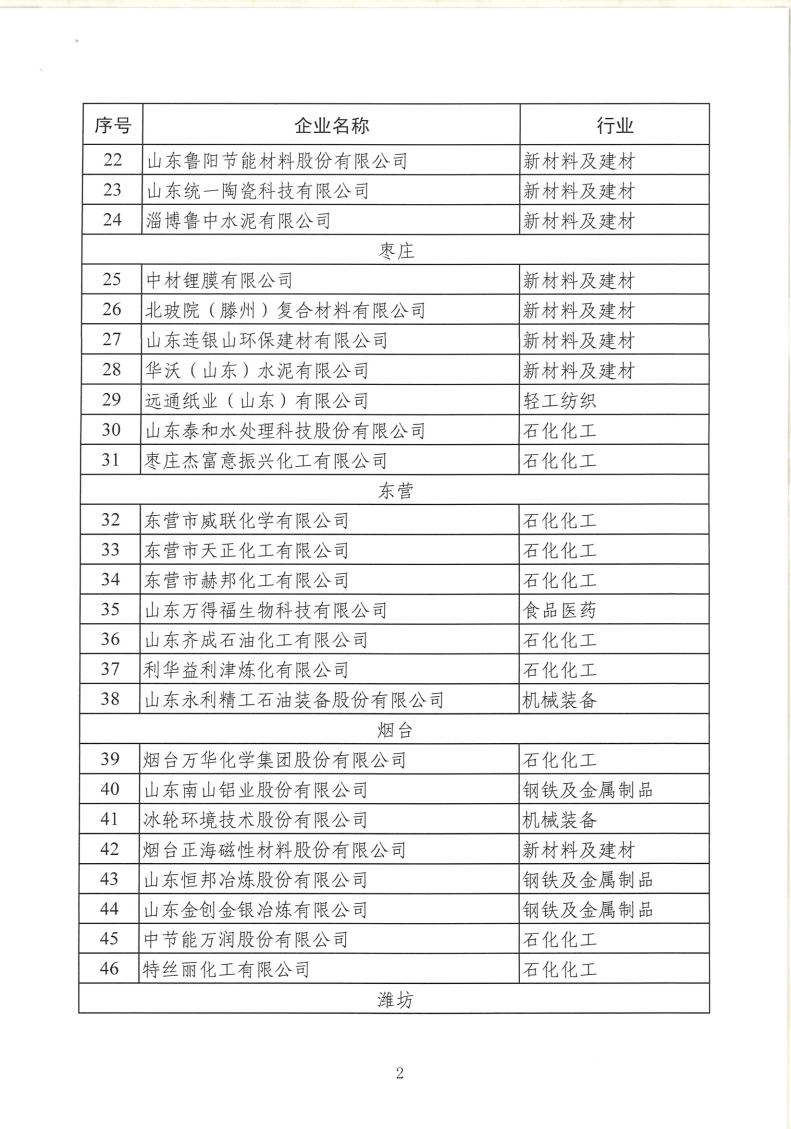 山東省工業(yè)和信息化廳關(guān)于2022年省級(jí)綠色工廠名單的公示