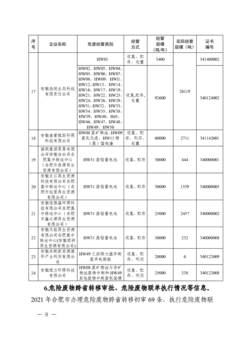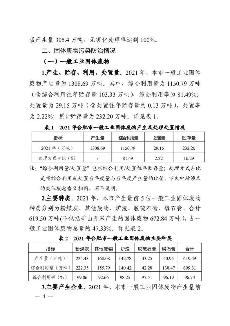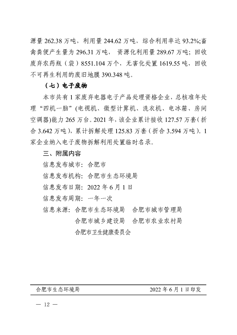 根據(jù)《大中城市固體廢物污染環(huán)境防治信息發(fā)布導(dǎo)則》(原國家環(huán)境保護(hù)總局公告2006年第33號)要求,日前,合肥市生態(tài)環(huán)境局向社會公開發(fā)布2021年合肥市固體廢物污染環(huán)境防治信息公告,提高公眾對固體廢物污染環(huán)境防治工作的認(rèn)識,擴(kuò)大公眾參與固體廢物環(huán)境管理的途徑。