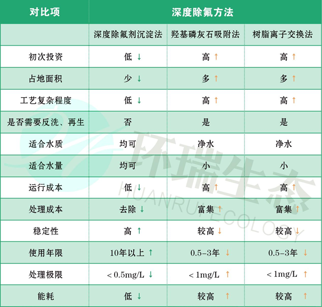 目前市面上經(jīng)過(guò)驗(yàn)證的深度除氟方法,能夠去除氟化物<1mg/L以下的主要包括離子交換法(樹(shù)脂離子交換法)、吸附法(Al2O3吸附法、羥基磷灰石吸附法等)、深度除氟劑沉淀法等。