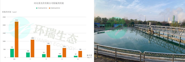 河北某光伏有限公司,排水水量3600噸/天,由于使用氫氟酸導(dǎo)致原水氟化物高達(dá)100mg/L,通過(guò)鈣鹽處理至8~14mg/L。先前使用市面某公司除氟劑,現(xiàn)使用“氟凈”牌除氟劑后投加量減少35%,為客戶(hù)節(jié)約20%成本。
