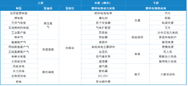表1 氫能產(chǎn)業(yè)鏈
